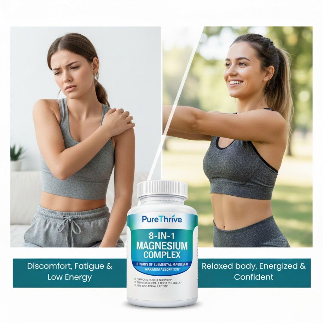 Experimente un poderoso suplemento diario de magnesio diseñado para apoyar sus músculos, huesos, calidad del sueño, relajación, salud nerviosa y bienestar general.