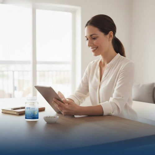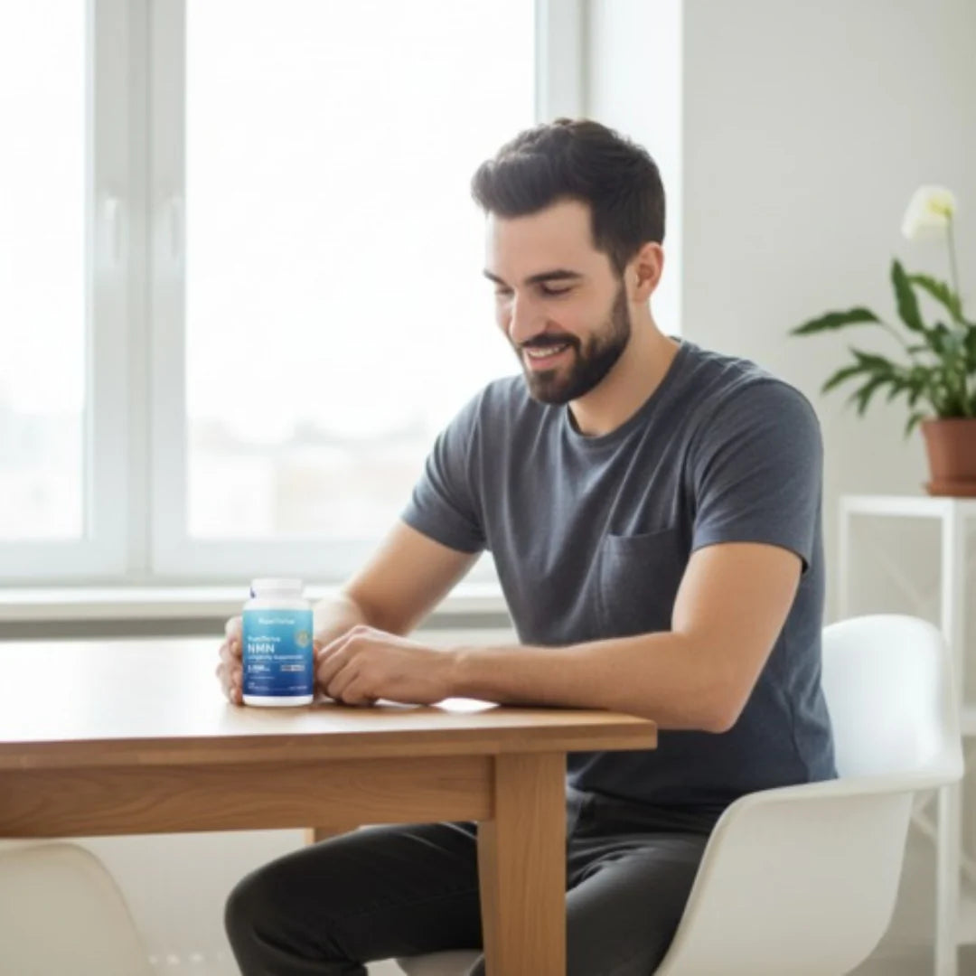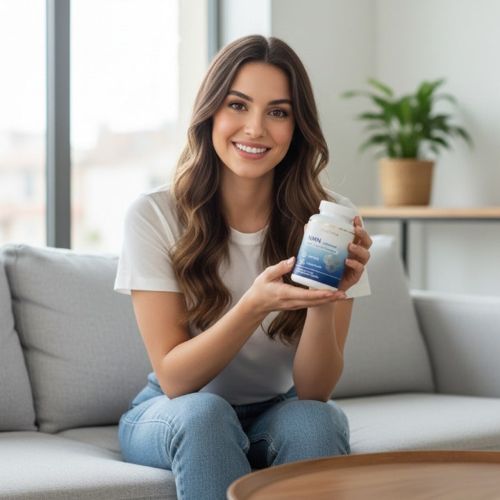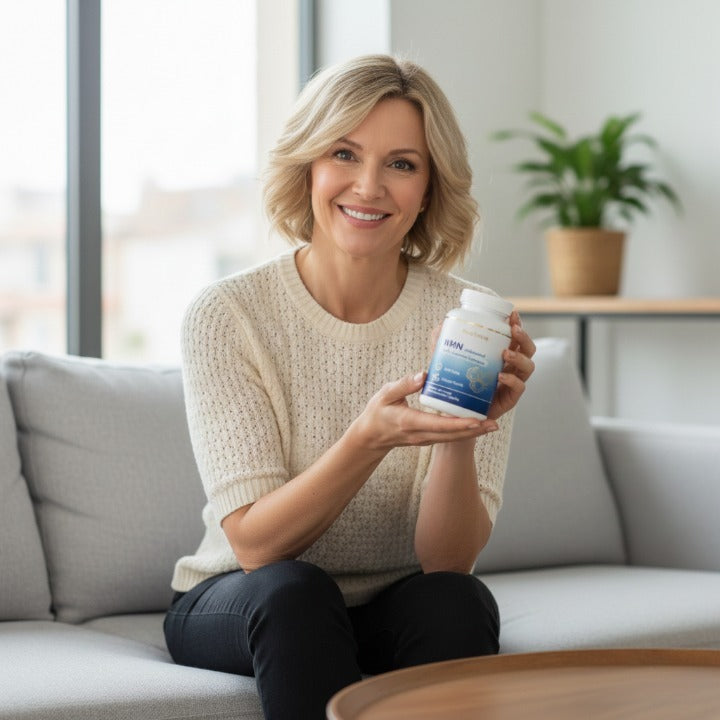 This clean, high-potency formula combines pure β-Nicotinamide Mononucleotide (NMN) with a synergistic blend of antioxidants, coenzymes, and plant compounds—including resveratrol, CoQ10, vitamin C, TMG, quercetin, and glutathione—nutrients widely researched for their role in supporting NAD+ production and cellular health.